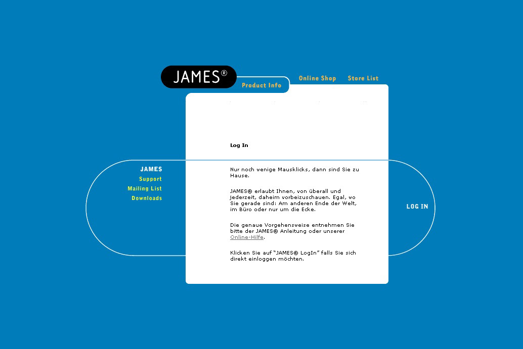 Home automation in 2000 was in no way a portrait of simplicity, it was barely a thing. James was one of the first players in the field and made it their mission to fix that and bridge the knowledge gap for consumers while balancing availability and affordability. Still, there was an inevitable degree of complexity, so it was important for their site to convey a sense of intuitiveness and simplicity. Big solid color and simple shapes, all networked together with some judicious linework/wiring created the right impression.